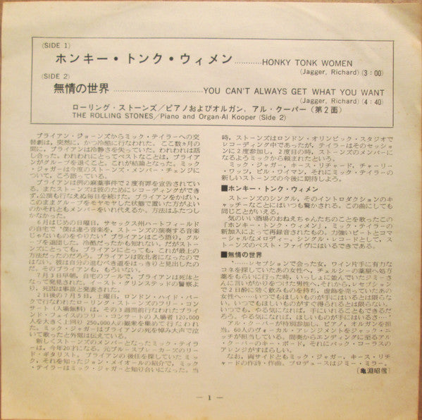 | Title | Honky Tonk Women / You Can't Always Get What You Want |
