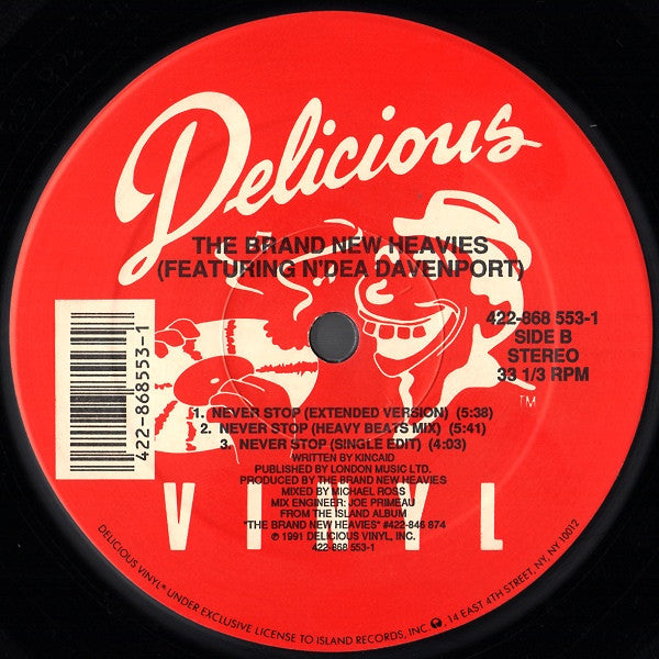 The Brand New Heavies - Never Stop (Vinyl, 12", 33 ⅓ RPM) Very Good (VG) / Very Good Plus (VG+)