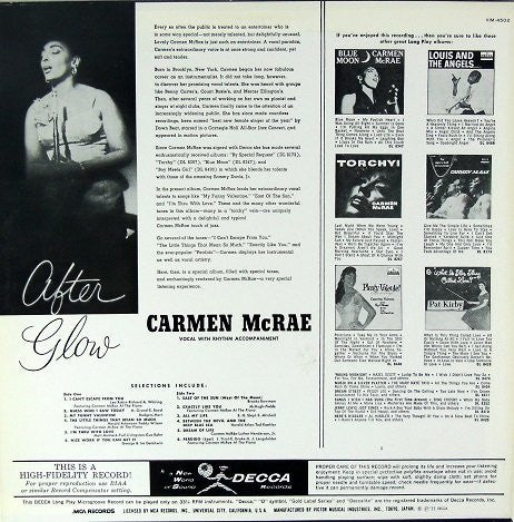 Carmen McRae - After Glow (Vinyl, LP, Mono) Near Mint (NM or M-) / Very Good (VG)