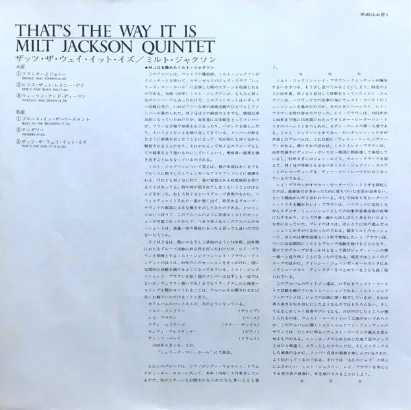 Milt Jackson Quintet - That's The Way It Is (Vinyl, LP, Album, Reissue, Stereo) Very Good (VG) / Very Good Plus (VG+)