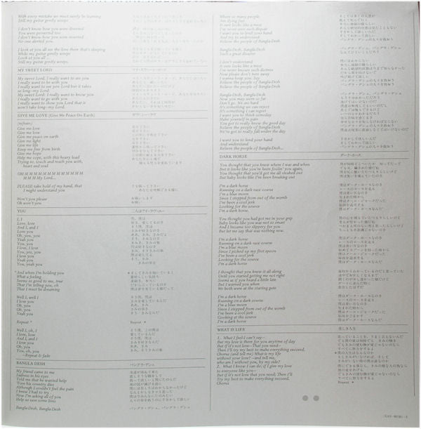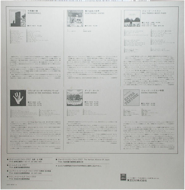 Comes in heavy sleeve with red/yellow obi strip.Includes printed inner sleeve, a 6-page lyrics insert and a Toshiba EMI catalog sheet.