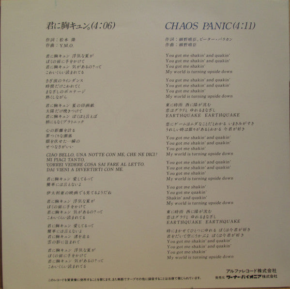 Yellow Magic Orchestra - 君に、胸キュン。= Kimi Ni Mune Kyun (Vinyl, 7", 45 RPM, Single) Very Good Plus (VG+) / Near Mint (NM or M-)