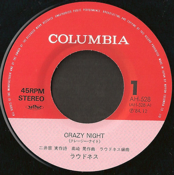 Loudness (5) - Crazy Night (Vinyl, 7", 45 RPM, Single) Very Good Plus (VG+) / Very Good Plus (VG+)