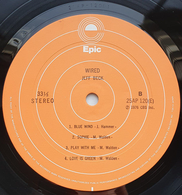 This is the subsequent 3rd variation release, still catalog number 25AP 120. Featured new smaller Jeff Beck Wired font and new "graphics/blue flames" same obi strip as 2nd variation release.An Equator production.