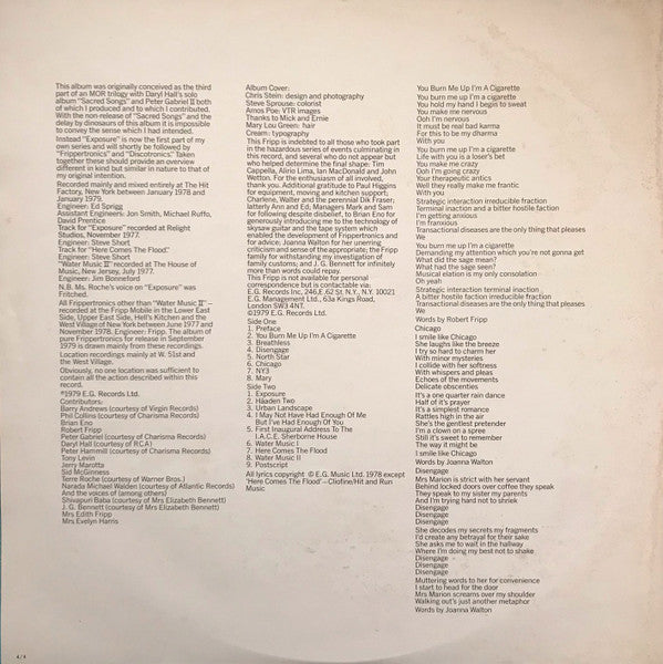 Robert Fripp - Exposure (Vinyl, LP, Album, Misprint, Stereo) Very Good Plus (VG+) / Near Mint (NM or M-)