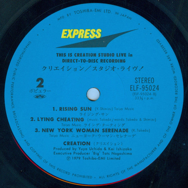 Creation (6) - This Is Creation Studio Live in Direct to Disc Recording (Vinyl, LP, Album) Very Good Plus (VG+) / Very Good (VG)