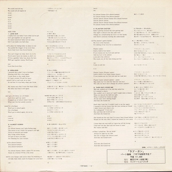 2 obis have been joined into 1 large obi.Issued with a 4-page insert with notes and lyrics, "love gun" and "Bang!" inserts and a poster.