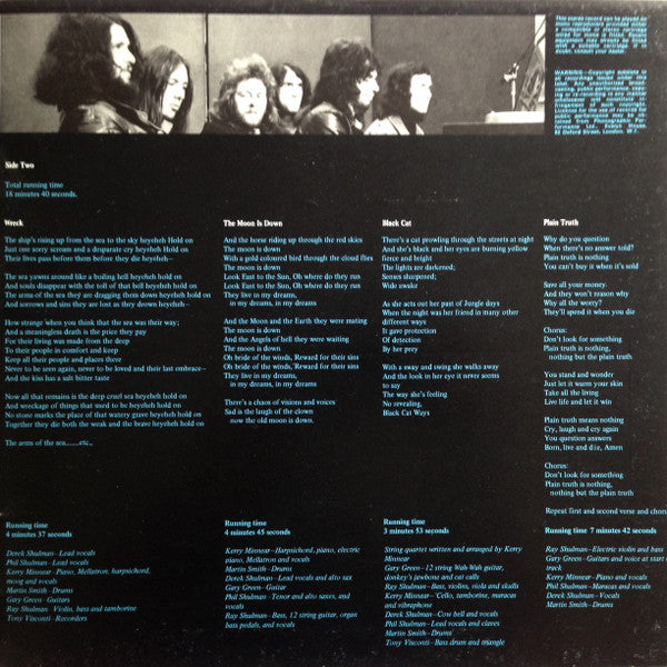Record: slightly warped, lines, scuff, spindle marks. Cover: ring wear, corner bump, corner bent and slightly damaged at the back, spine slightly faded.