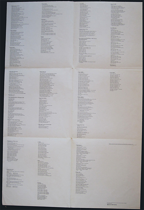 "The Beatles" logo is embossed in lower portion of front-cover.Gatefold sleeve with green obi, 4 pin-ups, folded poster, and insert.