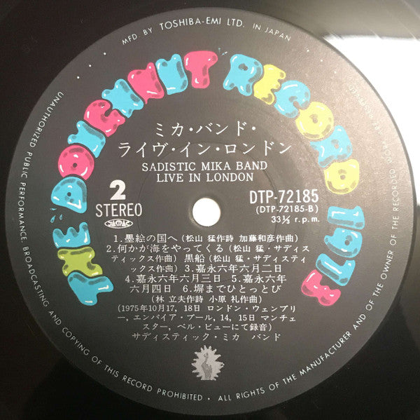 Sadistic Mika Band - Mika Band Live In London (Vinyl, LP, Album, Stereo) Very Good (VG) / Very Good (VG)