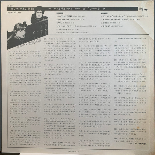 Orchestral Manoeuvres In The Dark - Organisation (Vinyl, LP, Album) Very Good (VG) / Very Good (VG)