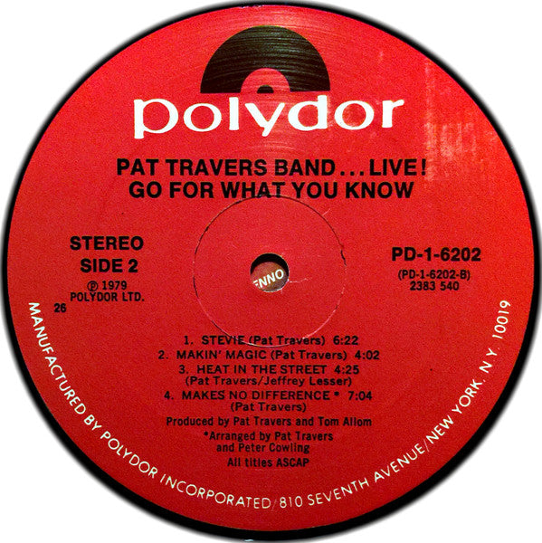 Pat Travers Band - ...Live! Go For What You Know (Vinyl, LP, Album) Very Good (VG) / Very Good (VG)