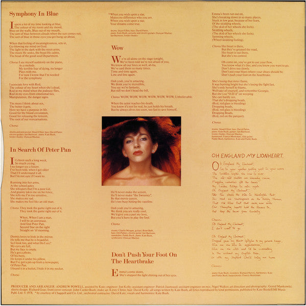 All lyrics reproduced by kind permission, published by Kate Bush/EMI Music Publ. Ltd. © 1978, lyrics in A2 by courtesy of Label-273333.