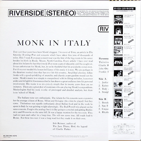 Thelonious Monk - In Italy (LP, Album, Limited Edition, Stereo) - Very Good Plus (VG+) / Very Good Plus (VG+)