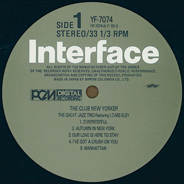 The Great Jazz Trio - The Club New Yorker (LP, Album, Stereo) - Very Good Plus (VG+) / Very Good Plus (VG+)