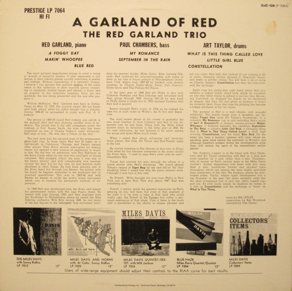 The Red Garland Trio - A Garland Of Red (LP, Album, Reissue, Mono) - Very Good Plus (VG+) / Very Good (VG)