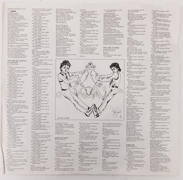 LP housed inside a dust sleeve with lyrics and drawings by Michael Jackson.