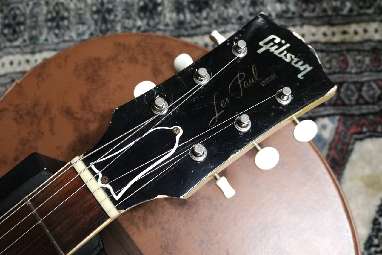 Released in 1955, the Les Paul Special is based on Les Paul Junior with a flat mahogany body, and features carefully selected 50's style thick mahogany neck, rosewood fingerboard, wraparound bridge, triple Crewson style white pegs, P90 pickups added to the neck position, neck bindings, controls for front pickups, and a 3-way toggle switch.