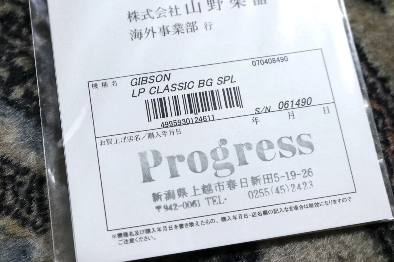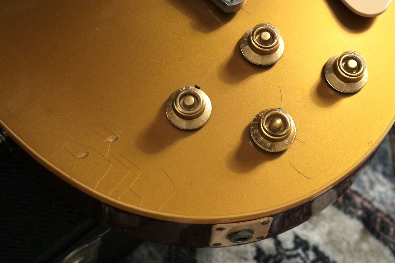 This is a special piece that uses a slightly rare color called Brion Gold, a slightly rare color with Yamano Musical Instruments from the time that came with it, with the word "LP CLASSIC BG SPL" written on its warranty card.The atmospheric look and the scratches that have been worn out just right give a dignified look that cannot be produced in a new product.