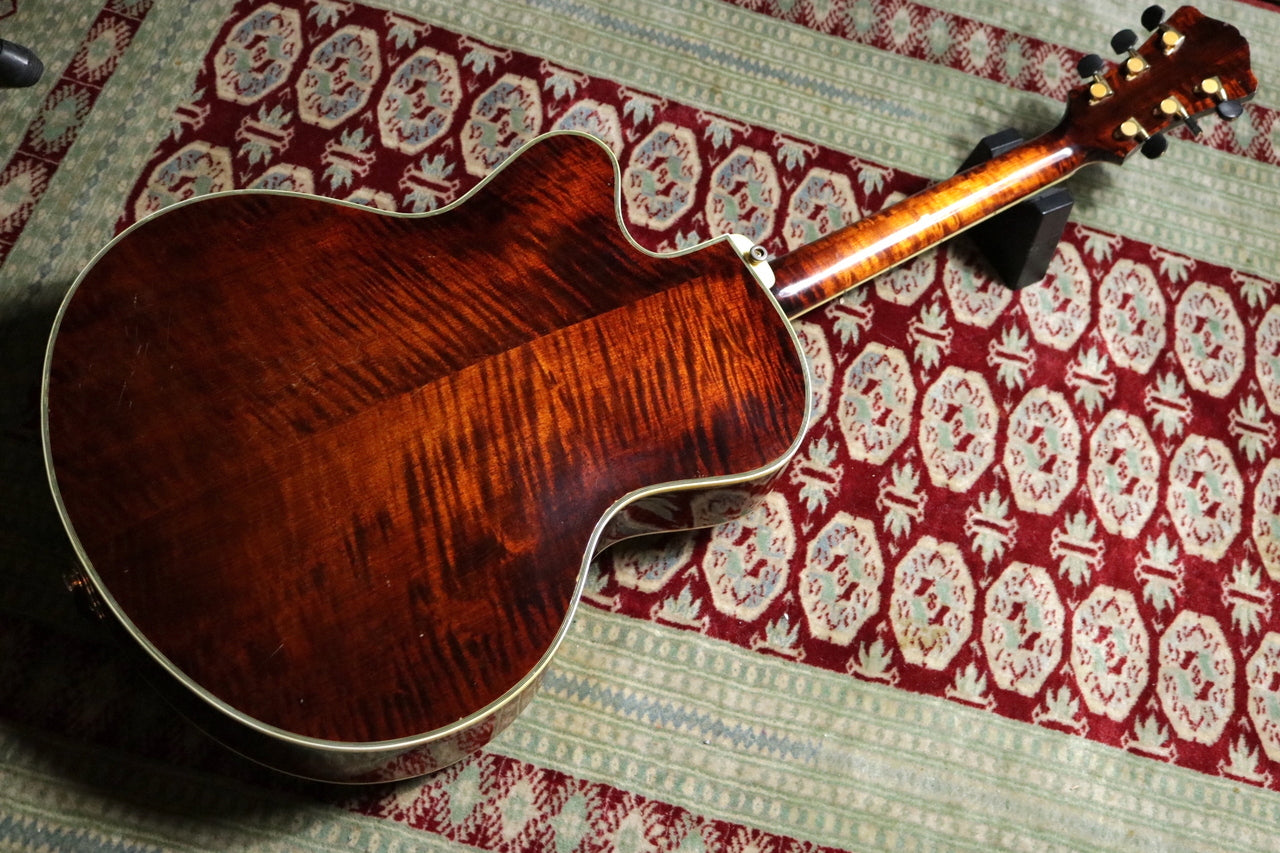It features a spruce top, a solid flame maple back and sides, a maple neck and an ebony fingerboard.The thin paint accentuates the curves of the archtop, creating a luxurious feel.