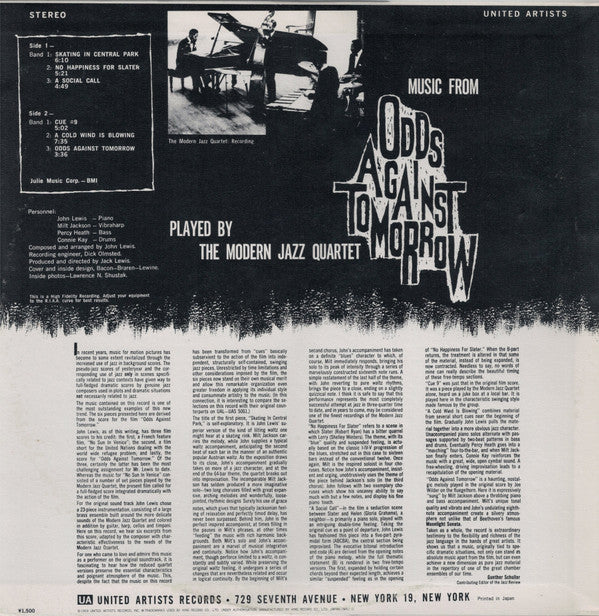 The Modern Jazz Quartet - Music From "Odds Against Tomorrow" (LP, Album, Reissue, Stereo) - Near Mint (NM or M-) / Very Good Plus (VG+)