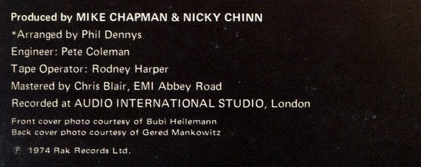 ℗1974 RAK Records Ltd.Manufactured by Toshiba EMI Ltd., Japan
