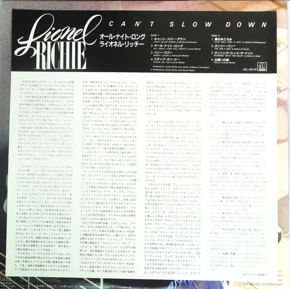 Lionel Richie - Can't Slow Down (LP, Album) - Very Good Plus (VG+) / Good Plus (G+)