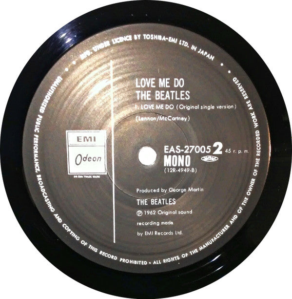Japan's 20th anniversary commemorative release includes both versions of Love Me Do.Plays at 45 RPM.