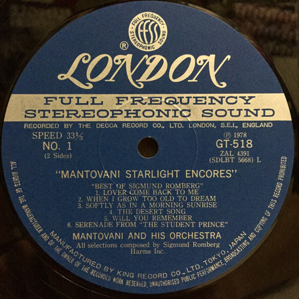 Mantovani And His Orchestra - Mantovani Starlight Encores (LP, Album) - Near Mint (NM or M-) / Near Mint (NM or M-)