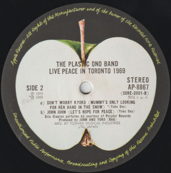 The Plastic Ono Band - Live Peace In Toronto 1969 (LP, Album, Stereo) - Very Good (VG) / Very Good Plus (VG+)
