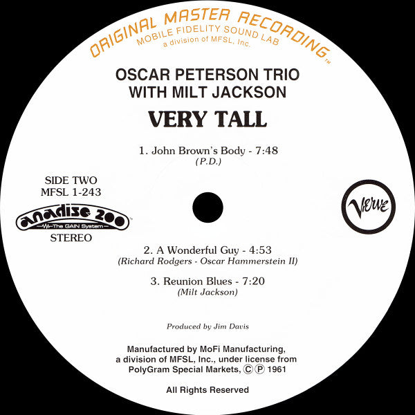 The Oscar Peterson Trio - Very Tall (LP, Limited Edition, Numbered, Reissue, Stereo) - Good Plus (G+) / Very Good (VG)