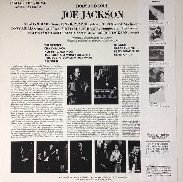 Joe Jackson - Body And Soul = ボディ・アンド・ソウル (LP, Album) - Very Good Plus (VG+) / Very Good Plus (VG+)