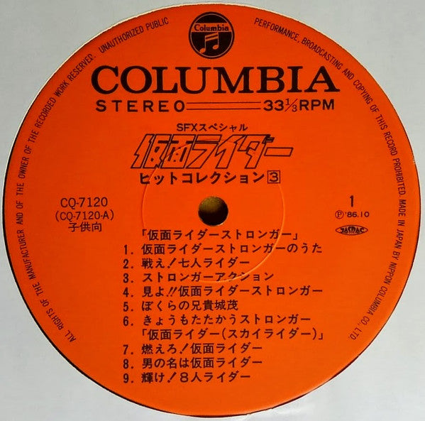 Shunsuke Kikuchi - 仮面ライダー Hit Collections 3 (ストロンガー. スカイライダー. スーパー1. ZX編) (LP, Compilation) - Very Good Plus (VG+) / Very Good Plus (VG+)