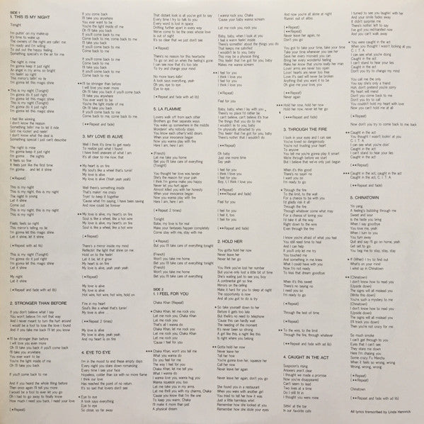 Track B1 written by Prince and was also previously covered by The Pointer Sisters on their "So Excited!" LP a couple of years prior to this release from Chaka Khan.