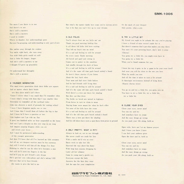 Front cover is similar to the US back cover. Back cover has Japanese liner notes. Released with separate English lyric sheet.Barcode and Other Identifiers