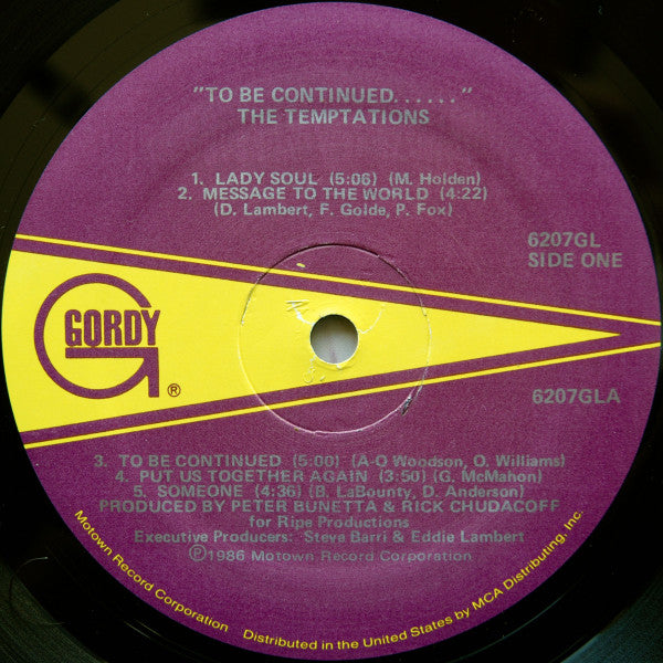 The Temptations - To Be Continued... (LP, Album) - Very Good Plus (VG+) / Very Good Plus (VG+)