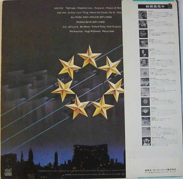 Comes in a single sleeve with pale green Obi featuring ELO logo in white & black, with silver-grey rim on the front; back of the OBI features other artist releases in this series. Also includes a regular release inner sleeve with credits in English, and a separate unique paper insert with story and track listings all in Japanese language.