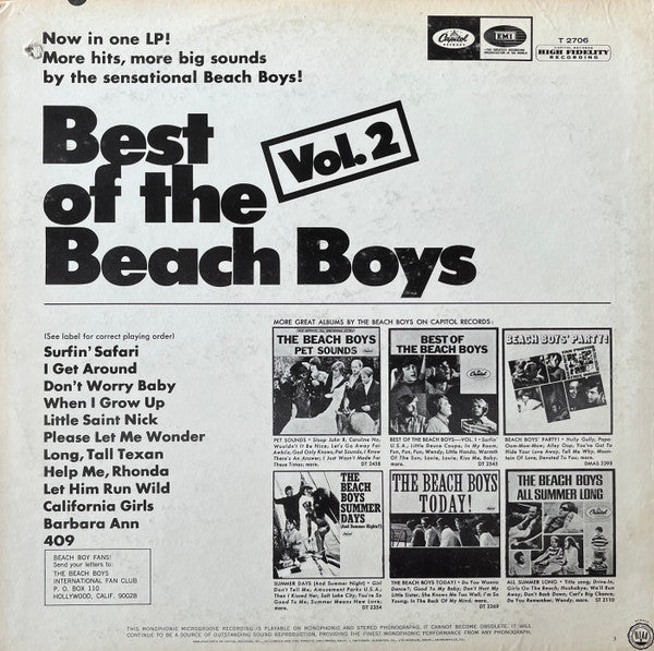 The Beach Boys - Best Of The Beach Boys Vol. 2 (LP, Compilation, Mono) - Very Good (VG) / Very Good (VG)
