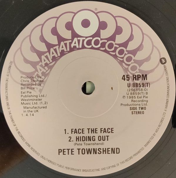 Pete Townshend - Face The Face (12", 45 RPM) - Very Good (VG) / Very Good Plus (VG+)