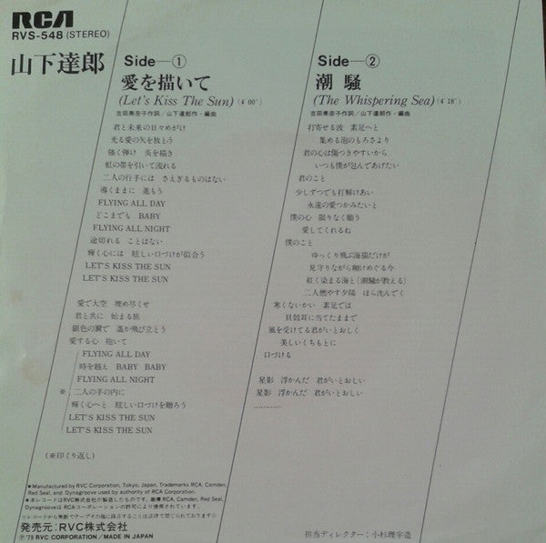 Tatsuro Yamashita - 愛を描いて = Let's Kiss The Sun / 潮騒 (7", 45 RPM, Stereo) - Very Good Plus (VG+) / Very Good (VG)