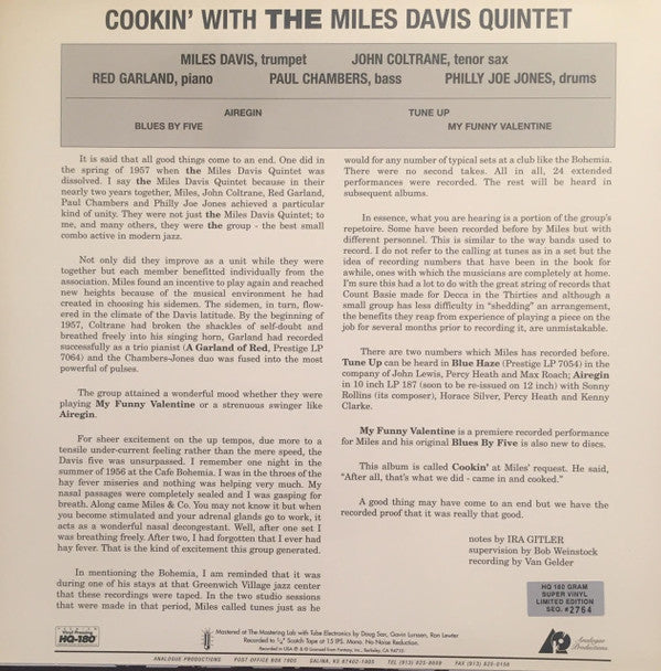 Recorded on October 26, 1956.180 Gram Analogue Productions Limited Edition.