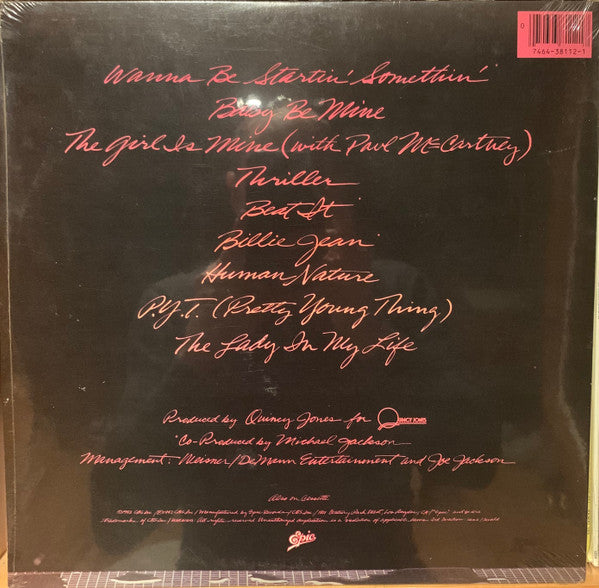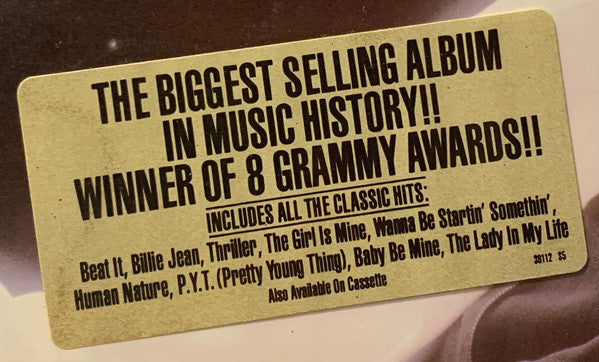 This pressing lists Michael Jackson as a co-producer on the back cover and is therefore a 2nd pressing or later.Hype sticker states: "THE BIGGEST SELLING ALBUM IN MUSIC HISTORY!! WINNER OF 8 GRAMMY AWARDS!!