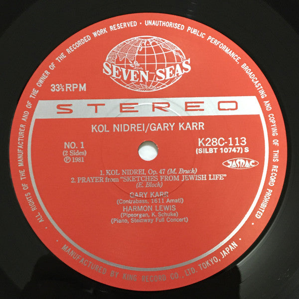 Gary Karr - Kol Nidrei (LP, Album) - Very Good Plus (VG+) / Very Good (VG)