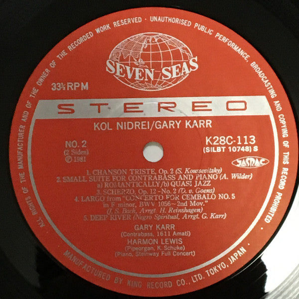 Gary Karr - Kol Nidrei (LP, Album) - Near Mint (NM or M-) / Good Plus (G+)