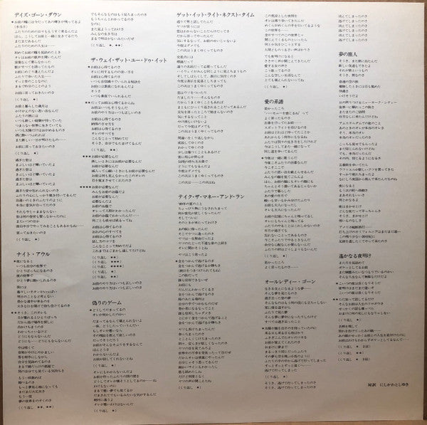 Without obi but with liner notes & color fold out lyrics sheet(has few stains).