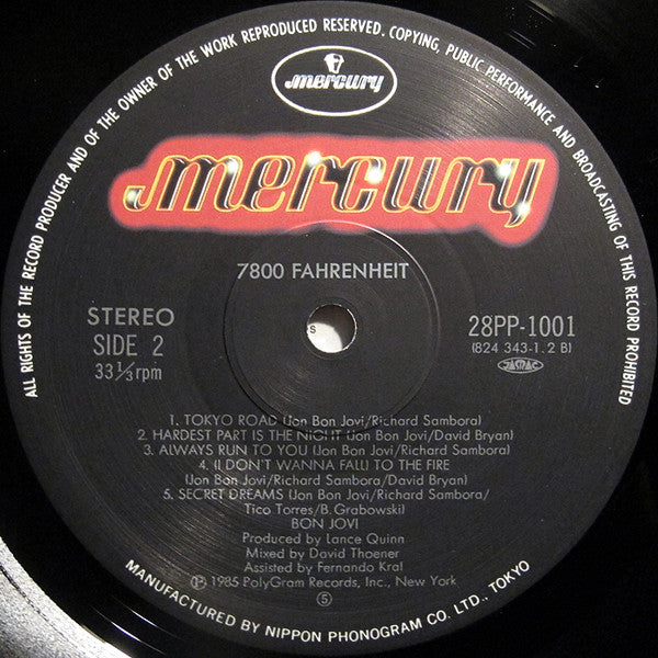Bon Jovi - 7800° Fahrenheit = 7800 ファーレンハイト (LP, Album, Stereo) - Very Good Plus (VG+) / Very Good Plus (VG+)