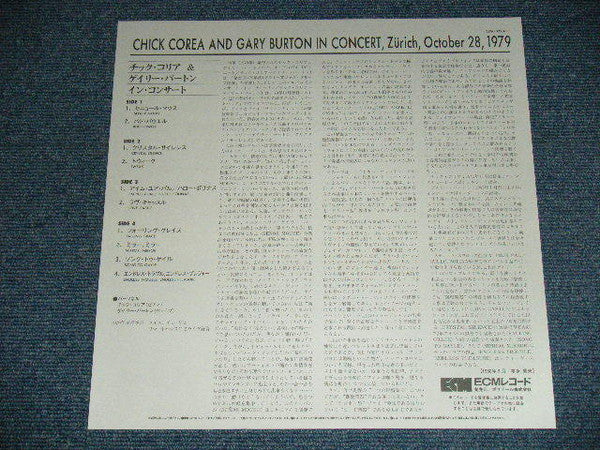 Gary Burton / Chick Corea - In Concert, Zürich, October 28, 1979 (2xVinyl, LP, Album, Reissue) Near Mint (NM or M-) / Very Good Plus (VG+)