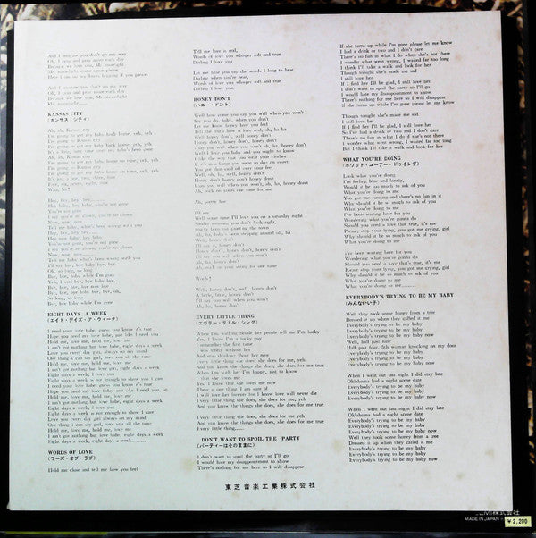 Issued in a gatefold sleeve with a Label-545814 obi, a lyric insert, and a black inner sleeve.- No Apple logo on back cover.