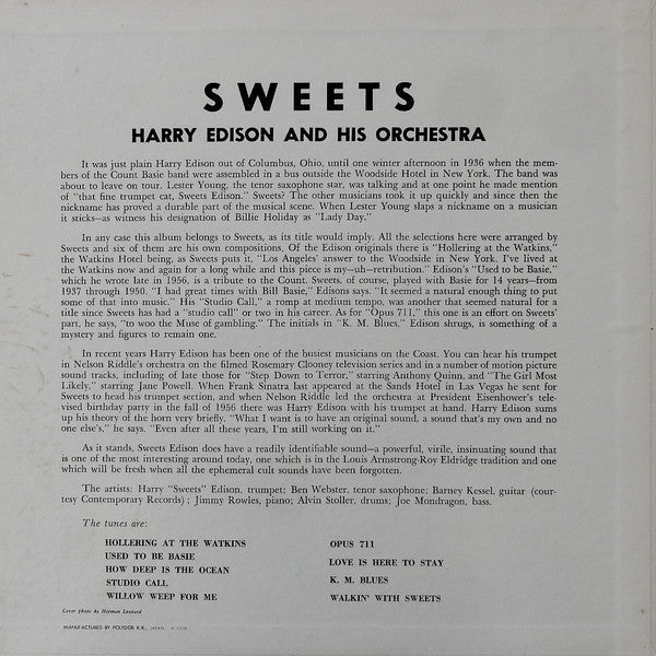 Harry Edison And His Orchestra - Sweets (LP, Album, Reissue, Mono) - Very Good (VG) / Very Good Plus (VG+)