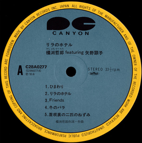 Tetsuro Kashibuchi - Hotel Lilas = リラのホテル (Vinyl, LP, Album) Very Good Plus (VG+) / Very Good (VG)